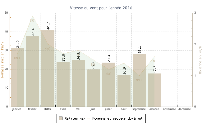| mars | -1.4 °C | 2.8 °C | 21.2 °C | 13.0 °C | 6.9 °C | 2.0 km/h | 40.7 km/h | NNO |