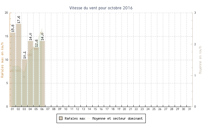 | 06 | 6.2 °C | 18.3 °C | 13.8 °C | 2.5 km/h (14.0 km/h) | NE |